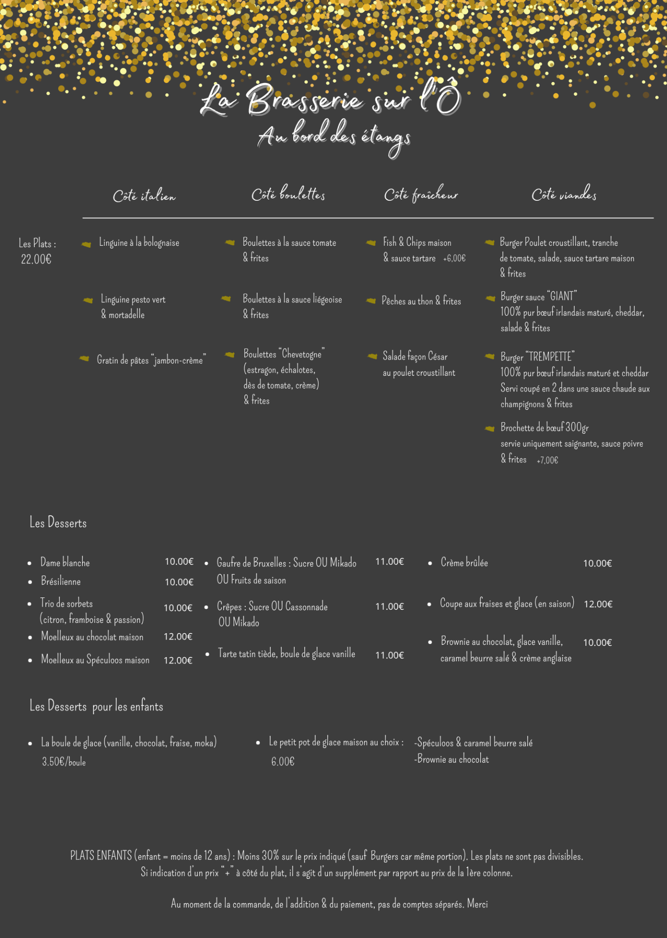 Les plats et tarifs indiqués sur cette carte en ligne sont donnés à titre informatif et peuvent être modifiés sans préavis. Seule la carte disponible au restaurant fait foi.